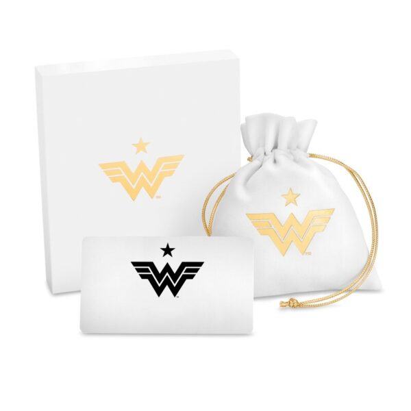 Created in sterling silver and warm 10K gold, this look showcases an open rope-textured circle gleaming in yellow gold. A trio of sculpted charms – a silver sword, a diamond-touched "WW" logo and a diamond-adorned star emblem in gold – add epic appeal. Radiant with 1/8 ct. t.w. of diamonds and a brilliant buffed luster, this pendant suspends from a diamond-lined bail along an 18.0-inch cable chain that secures with a spring-ring clasp.This exclusive fine jewelry collection inspires you to wear your strength, confidence and power.