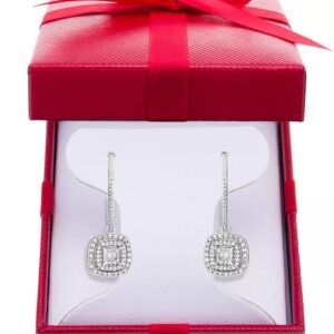 Diamond Halo Drop Earrings (1/2 ct. t.w.) in Sterling Silver, 14k Rose Gold Sterling Silver & 14k Gold Sterling Silver.