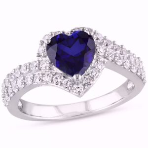 Blue Sapphire (1/4 ct. t.w.), White Sapphire (1/8 ct. t.w.), & Diamond Accent Heart Ring in Sterling Silver